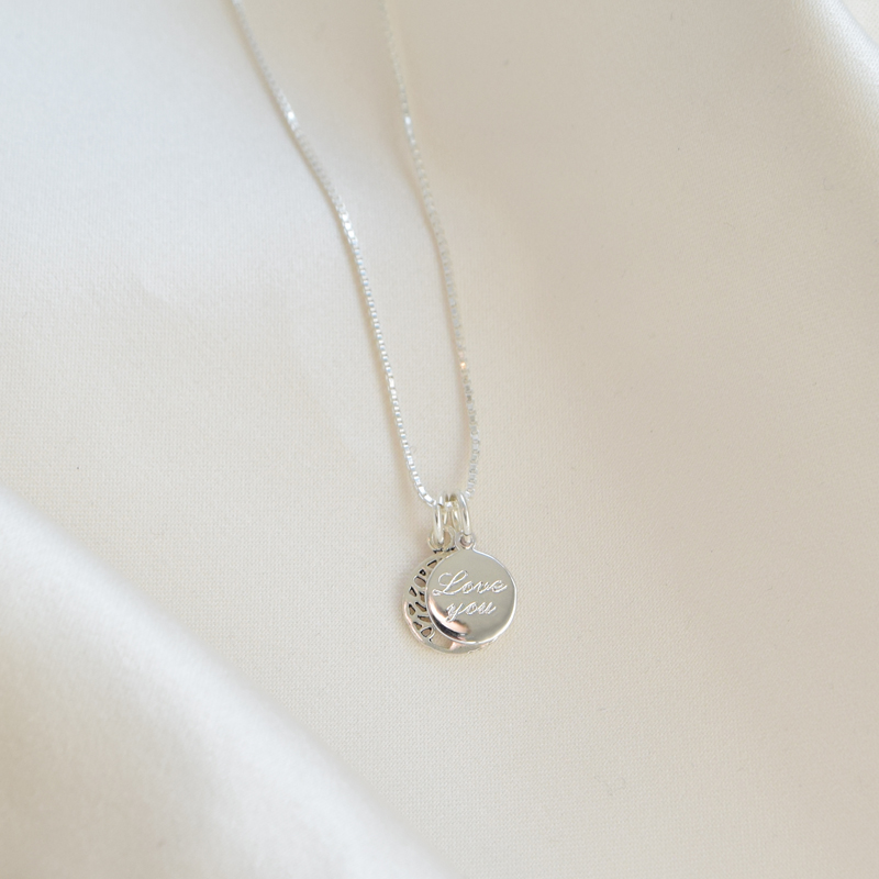 The round amulet allows for personal engraving on both sides, so you can add a name, a date, or a special message. This makes the necklace a unique piece with personal meaning.