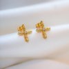 Feminine gold cross necklace with engravings and a beautiful white stone.