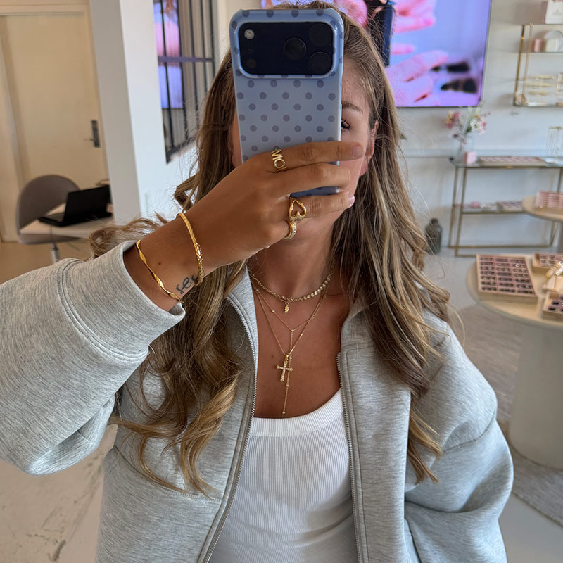 The cross is made of 18 carat gold-plated genuine .925 sterling silver and represents faith, hope and love and works both as a piece of jewelery and a statement piece.