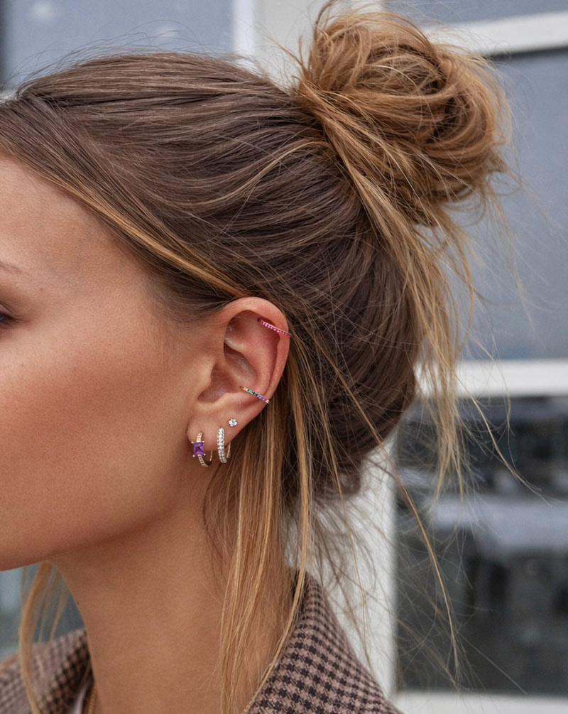 Textured surface arranged with cubic zirconia stones which creates a sparkling effect.