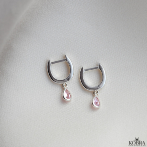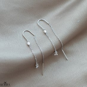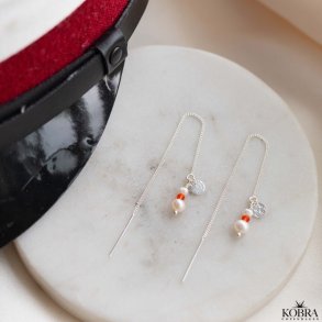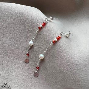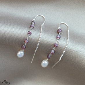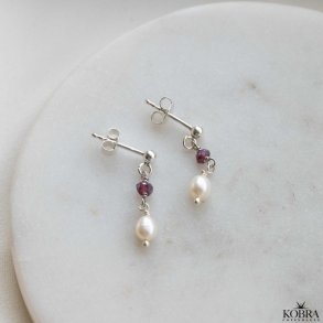 "Ellish" silver earrings with reddish garnets and white freshwater pearl