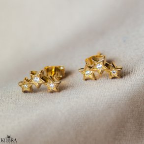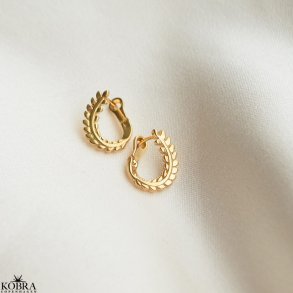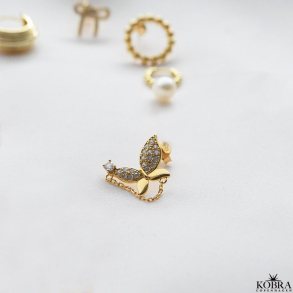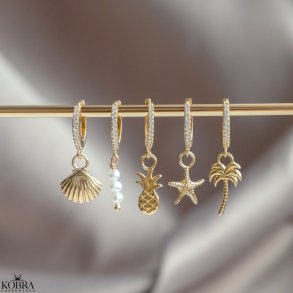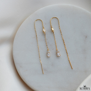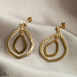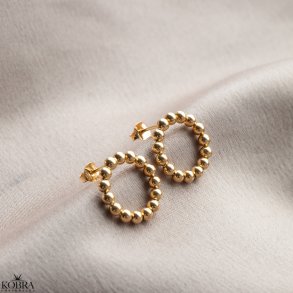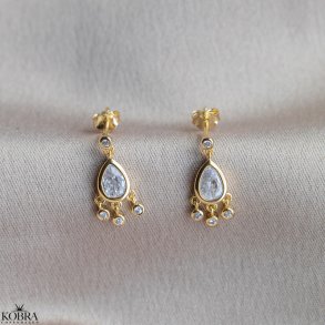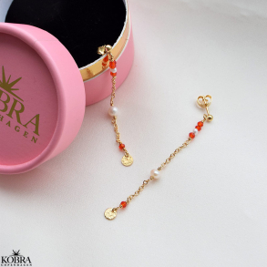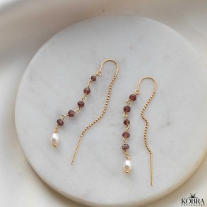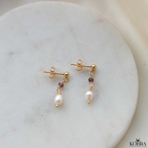 "Ellish" gold earrings with reddish garnets and white freshwater pearl