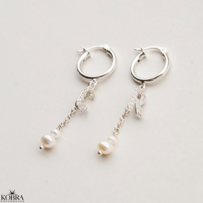 "My Favorite" silver earrings with your letters and white freshwater pearls