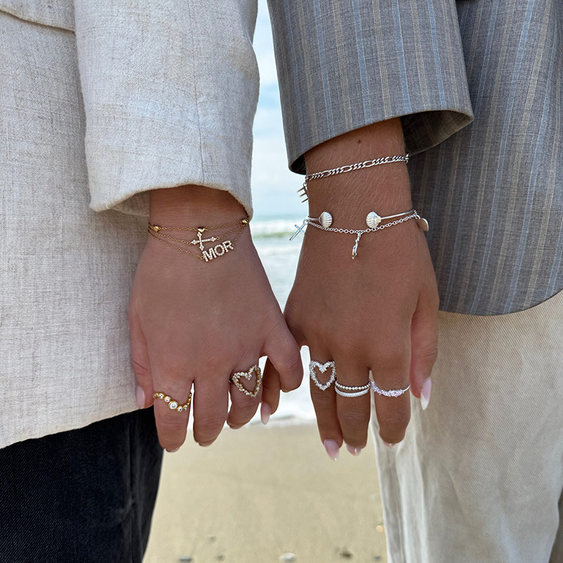 The delicate cross measures 13 mm and is beautifully integrated into the chain, allowing it to rest naturally on the wrist. The small stones catch the light and add a subtle shine, making the bracelet both minimal and eye-catching.