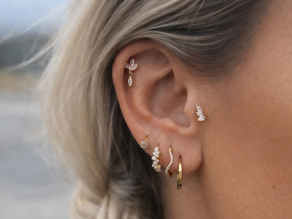 Gold-plated piercings with warm glow and strength
