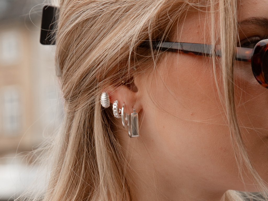 If you have multiple ear piercings, a whole universe of possibilities opens up. Small silver hoops, simple sticks, and larger round earrings can be combined so you create an expression with balance and variation. The cool tone of silver makes it easy to bring different shapes together into a harmonious whole. At Kobra Copenhagen, the earrings are designed precisely for this flexibility, allowing you to switch between discreet and more dominant looks without compromising a clean overall impression.