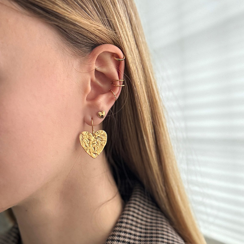 Ti Amo stud earrings are elegant, heart-shaped studs in 18k gold-plated sterling silver. The soft, polished heart combined with a delicate edge creates a romantic and timeless look that feels both classic and modern.